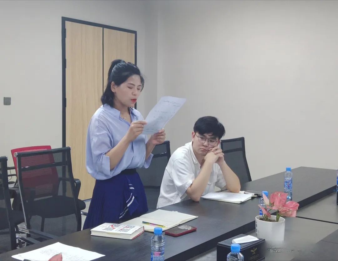 現場,許老師請學員們依次朗誦詩歌,以此感受氣息停頓、語音語調、音色音量的差別所帶來的不同視聽效果體驗,并重點從四個方面為大家做了詳細而生動得講解: